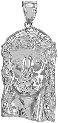 Claddagh .925 Sterling Silver Large 1.5 Inch Jesus Piece Pendant for Men with Crown of Thorns