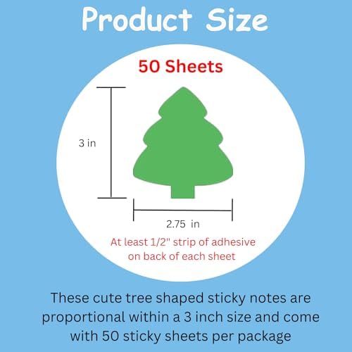 - PROUDLY MADE IN THE USA: Each package contains one 50 Sheet self-adhesive Evergreen Tree sticky notepad. The notepad is green in color, proportionally sized within a 3 inch size and has at least a half inch strip of adhesive on the back of each sheet. With a commitment to excellence, all of our products are proudly made in USA.
