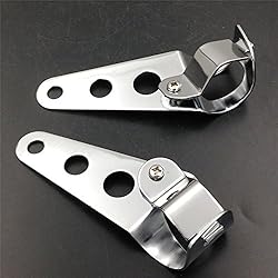 High Quality Steel Fork Clamp Headlight Mounting Brackets Fit For Motorcycles With 28mm-38mm Fork Tubes Headlight Brackets use with side-mount type headlights. Material: Steel ,Color: the same like pictures show Clamp Size: 28-38 mm ,Headlight mounting with 8mm or 10mm Bolts Handsome, easy to install mounting bracket for side-mount headlights.Adjustable to fit most forks,Install may without dropping the fork tubes.