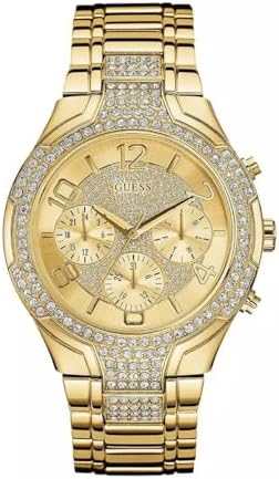 Reloj Pulsera para Mujer de Acero Inoxidable con Cristales y Tono Dorado de GUESS con Día, Fecha y Hora Militar/Internacional de 24 Horas. Color: Tono Dorado (Modelo: U0628L2)