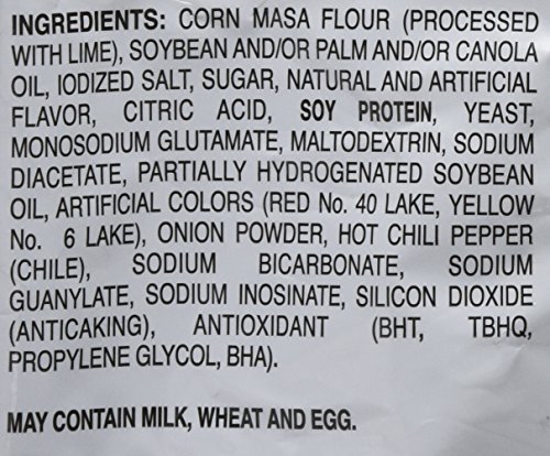 - Ingredientes: «AGUA, ACEITE DE SOJA, VINAGRE, AZÚCAR, ALMIDÓN ALIMENTARIO MODIFICADO, PEPINOS, SIROPE DE MAÍZ CON ALTO CONTENIDO DE FRUCTOSA, CONTIENE MENOS DEL 2% DE: CEBOLLAS SECAS, SAL, HUEVOS, AJO SECO, GOMA XANTANA, ESPECIAS, SORBATO DE POTASIO Y EDTA DISÓDICO DE CALCIO AÑADIDOS COMO CONSERVANTES, PEREJIL SECO, SABORES NATURALES, PIMENTÓN (COLOR)».