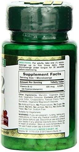 Nature's Bounty B-12 Tabletas de Disolución Rápida 500 Mcg, 300 Tabletas (3 X 100 Contenedor)