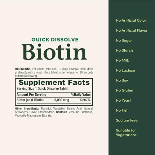 - FROM THE TRUSTED WELLNESS EXPERTS Nature’s Bounty Quick Dissolve Biotin Tablets are a product of nearly 50 years of dedication to quality, consistency and scientific research to make vitamins and nutritional supplements of unrivaled excellence.