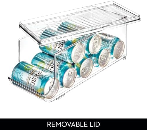 - STYLISH BEVERAGE ORGANIZER – The iDesign Can Holder Fridge Storage Bin with Lid holds up to eight standard-sized beverage cans; it’s ideal for storing soda, sparkling water, seltzer, beer and more in the refrigerator or pantry