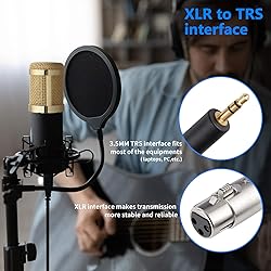 - Note:1.The Condenser Microphone only works with the device that could provide enough power(Voltage Required:5V) for it. When connected with desktop computer, the Microphone could be used alone; When connected with laptop computer, please connect the laptop to electrical outlet, or use a 48V phantom power to get enough power if the sound is not clear and high enough. 2.If your device could not provide enough power(when used with Amplifier or Mixer, etc.), the sound volume recorded might be low, and please use a extra 48V phantom power adapter to connect it.(phantom power adapter is not included). 3.The microphone can not be used with mobile phone and tablet computer. NOTE: It cannot work with Mac. 4.If you want better sound effect, a sound card should be used. 5.When recording, please put the microphone away from the amplifier to prevent recording noise due to amplifier. (1)Black Professional Condenser Microphone:Bass-reduction switch(-10dB) reduces room noise and deals with non-linearity audio input. Use precision electronic circuit to eliminate the crossover distortion and harmonic distortion. Good cardioid pickup output and high sensitivity. Low noise. Wide dynamic range. Fashionable design. Noble and elegant appearance.Sturdy and durable. Dimension: 1.9 x 6.3 inches/ 4.8 x 16 centimeters Body weight: 11oz/316g Color: Black Material: Metal (1)Ball-Type Anti-wind Foam Cap:Reduce the occurrence of wind, breath sounds and popping noises. Keep your microphone clean and help extend it's lifetime. (1)Microphone Shock Mount:Isolate most studio condenser mics from physical vibration, floor, and stand noise. (1)Power Cable:Length: Approx. 2.5m/8.2feet