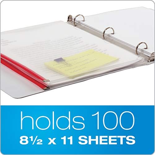 Zippered pocket expands up to 1/2" (1. 27cm) to hold up to 100 sheets of letter-size paper, notes or other accessory items. Poly material will not stick to contents. Pocket is three-hole punched for use in standard three-ring binders. Assorted colors include blue, black, red, purple and green.
