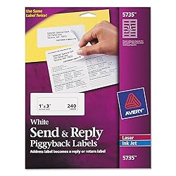 Avery 5735 Send & Reply Piggyback Inkjet/Laser Printer Labels, 1 5/8 x 4, White, 240/Pack