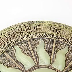 - Lovely by day and magical by night. Place our sun plaque in a sunny spot to charge the phosphorescence and enjoy a beautiful glow-in-the-dark sun at night. Stone-look circular plaque makes a beautiful garden stone. A striking piece of garden or yard art, and a lovely accent to any outdoor area. Made of polyresin and measures 25cm in diameter.