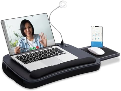 SOFIA + SAM Multi-Tasking Memory Foam Lap Desk up to 15" Laptop w/USB Light & Mouse Pad - Portable Foldable Laptop Tray w/Cushion for Bed, Couch, Desk - Ergonomic Lapdesk for Home Office & Reading