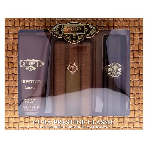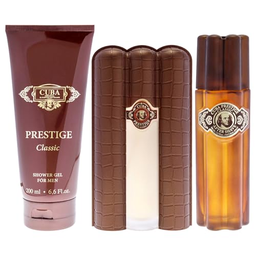 Cuba Prestige Clásico para Hombre - Juego de Regalo de 3 Piezas 3oz EDT Spray, 6.7oz Gel de Ducha, 3.3oz After Shave