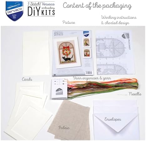 Vervaco Counted Cross Stitch Christmas Cards Kit Set of 3 Festive Feline Holiday Embroidery Kit for Beginners ca. 10,5 x 15 cm DIY Stationairy Set Gift for Crafters