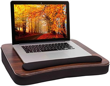 Sofia + Sam Multi Tasking Lap Desk with Memory Foam Cushion | Tablet Slot | Fits Laptops Up to 17" | Tablets Up to 9.6" | Black | Walnut Wood Top | Computer Lap Tray