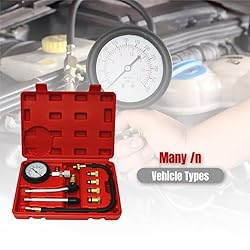 - Check valves and rings, inspect for carbon buildup and late timing. * Adapters for a wide number of vehicles (spark plug types/depths)* Kit includes 2 rubber cones ends for quick check (no need to thread into head)* 3" Gauge has dual color scale with 0-300 PSI, 0-20 kPa* Gauge will hold pressure values and has quick push button release valve* Fittings: M10, M12, M14, M16, M18 (Male, With “O” Ring)* Includes 14mm and 18mm spark plug adapters* Includes use manual with technical support Comes with 1/2" diameter x 14" extension hose, straight and angled fittings, rubberized gauge protector and a blow mold case.