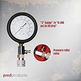 WIDE COMPATIBILITY: Includes 5 spark plug adapters (M10, M12, M14, M16, M18) for use on a variety of vehicles including cars, motorcycles, ATVs, lawn mowers, and small engines. EXCLUSIVE M16 ADAPTER: Features the rare M16 adapter, ensuring you're equipped to test compression on engine types that other kits might miss. ACCURATE COMPRESSION TESTING: 3-inch gauge with dual-scale readings (0-300 PSI and 0-20 kPa) for precise, clear measurements every time. NO-THREAD QUICK CHECKS: Rubber cone ends allow for fast compression tests without threading into the engine head, simplifying the process and saving time. DURABLE CONSTRUCTION: Built from high-quality rubber and metal fittings, ensuring durability and safety during use, making it reliable for repeated tests. COMPLETE KIT: Comes with 5 adapters, gauge, and essential fittings, all organized in a sturdy, molded plastic case for easy storage and portability.