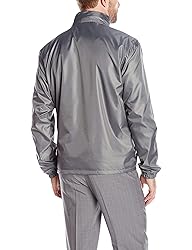 - Neither wind nor tight budgets stand a chance against this stylish 100 percent polyester windbreaker. Styled with elastic cuffs, convenient stow-away hood and covered front pockets.