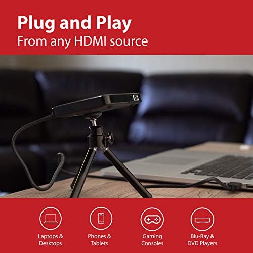 - Proyecta desde tu smartphone, tableta, portátil, reproductor de medios y cualquier otro reproductor de video HDMI (Nota: smartphones y tablets requieren un adaptador adicional)