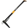 Weed puller for weed control with a diameter of max. 4 cm, For a sustainable and environmentally friendly weed control, Ideal for the extraction of dandelions, thistles, nettles and other root crops in loose soils, vegetable garden or garden- Traps the roots of the weeds between the claws of the weed puller (up to 10 cm underground), Extracts the plant along with its roots thanks to a patented mechanism of claws, With a little pressure on the handle the claws open and the weeds are released straight into a waiting wheelbarrow and off the lawn- Work in an upright position: No strain on the muscles and shoulders thanks to the long handle, Practical non-slip handle for a better hold- Handy foot pedal to push down the weed puller, Long life thanks to stainless steel claws and sturdy plastic handle (fiberglass), Easy to clean with water, Finnish design- Contents: 1x Fiskars Xact Weed Puller, Length: 1 m, Diameter: 3 cm, Weight: 950 g, Material: Stainless Steel/Plastic, Colour: Black/Orange, 1020126
