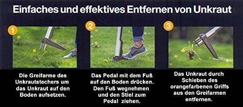 - Traps the roots of the weeds between the claws of the weed puller (up to 10 cm underground), Extracts the plant along with its roots thanks to a patented mechanism of claws, With a little pressure on the handle the claws open and the weeds are released straight into a waiting wheelbarrow and off the lawn