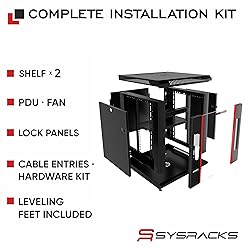 WALL-MOUNT ENCLOSED DESIGN – 19” wall mount server rack cabinet designed for network, AV, security and IT equipment installations while saving floor space. 24” DEEP ENCLOSURE – Supports routers, switches, patch panels, AV devices and communication equipment requiring additional installation depth. LOCKING GLASS DOOR & PANELS – Locking front tempered glass door and removable side panels provide controlled access and equipment protection. ACTIVE & PASSIVE COOLING – Perforated front door supports passive airflow, while the integrated top fan provides active ventilation. READY-TO-INSTALL KIT – Includes PDU, fixed shelf, brush cable entry panels and mounting hardware for wall installation.