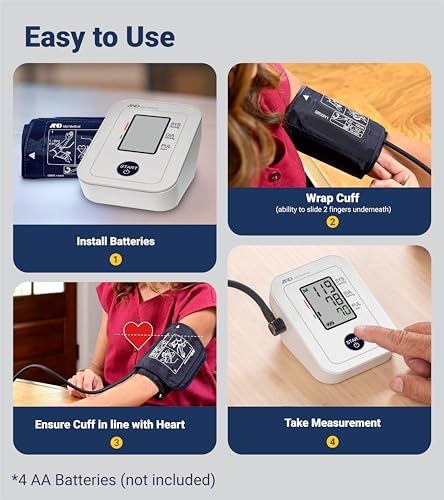 A&D Medical Blood Pressure Monitor for Home Use – UA-611 – Upper Arm Precise BP Machine– Wide Range Cuff 8.6-16.5” / 22-42cm), Easy to Use - One-Click Operation, 60 Reading Memory
