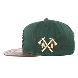 Genuine Nappa Leather brim in Brown. Premium wool blend crown in Dark Green. Chief Thunder logo 3D embroidered in White, Dark Green, Metallic Gold, and shades of Brown. OSFM (One Size Fits Most).