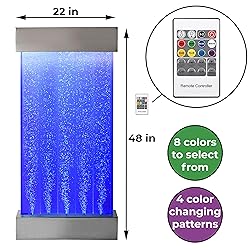 - Fully self-contained - just fill with distilled water. Suitable for indoor use - enjoy your bubble wall in a range of settings. 57 cm in width - 129 cm in length. Wall fixing supplied - Suitable wall is required. APP controlled - lights change to a wide range of colors and speeds.