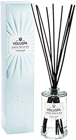 Notes of California Driftwood, Sea Salt & Shore Brush. Fragrance Description Under a cloudless, sunny, blue sky, waves roll in and out along a seemingly endless shoreline. Surfers glide into shore effortlessly. A gentle marine breeze fills the wide-open windows of a small beach house and caresses it with the scent of Sea Salt, California Driftwood and Shore Brush. Get a California beach house vibe anytime, anywhere- feel the sand in your toes and breeze in your hair. Hold the candle to your ear, listen carefully- and you just might hear the tide rolling in… About the Product Voluspa’s fragrant diffuser oil is hand-poured into an glass vessel for a subtle pop of elegant décor. Create your home's signature, always-on fragrance in spaces requiring minimal effort, and enjoy for 4-6 months. Includes 10 rattan reeds for powerful fragrance without overwhelming.