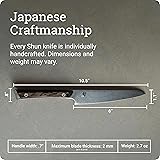 KITCHEN UTILITY KNIFE: The Shun Kanso 6-inch Utility Knife is expertly designed for multipurpose use where precise cuts are needed, making it an indispensable tool for any cook. ESSENTIAL SIMPLICITY: Named after a design principle influenced by Zen philosophy, the Kanso series reflects its definition, “simplicity.” Created with the most essential elements, this Kanso knife delivers effortless performance. REFINED SHARPNESS: Crafted from AUS10A high-carbon stainless steel refined with vanadium, this knife delivers razor-sharp precision with a 16-degree edge. DURABLE HANDLE: Made with contoured tagayasan, known as “iron sword wood,” this full-tang handle offers a comfortable and secure grip for both left and right-handed users. The butt also functions as a bottle opener and hanging hook. JAPANESE CRAFTSMANSHIP: Each Shun knife is meticulously handcrafted in Japan, reflecting a legacy of traditional knife-making expertise and a dedication to superior quality. Supported by free sharpening and honing.