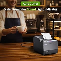 Notice: DO NOT Square/Clover/chromebook/UberEats/grubhub/Doordash/Postmates/Upserve/Shopify/Gloriafoods/Lightspeed, NO Wifi, NO Bluetooth, Not work with(iPhone, iPad, android phone, android tablet). Support laptops and desktop computer(Windows/Mac/Linux) The USB flash driver includes 80mm series and 58mm series (corresponding to 80mm and 58mm paper width respectively), please pay attention to distinguish the choices! Printer size: 200×145×142mm. Can print receipts/symbols Sound Set: Have sound and light Indicator, order reminder function, this function can be closed by printer tool(download from the USB flash or our official website). If you don't need the sound, you can close it. Step is found the options "Other"-Volume Set-Voiceless-Set. You can also set the font and other via the printer tool. Tell us if you have any question with it Wall Hanging Design: With two hanging holes on the bottom support wall mount hanging, save the place. USB Serial Ethernet interface. Print width:72mm/48mm; Paper Width: support 80mm/58mm. Work with 3 1/8 x 203ft direct thermal receipt paper. With auto cutter and compatible with several operating systems Compatible: The printer box has a USB flash which include the User guide and driver set up guide (pdf). If the USB flash can not download or lost, please download the driver in our official website or contact us. Can install printer via TCP/IP. Compatible with ESC/POS/OPOS command, Support WIN2003/WINXP/WIN7/WIN8/WIN10/LINUX/Mac DIP Switches: The printer has DIP switches on the bottom, can set including auto-cutter, languages, sound-light indicator, print density, etc If you use Mac computer, USB flash include the Mac OS driver install manual, please read it before download