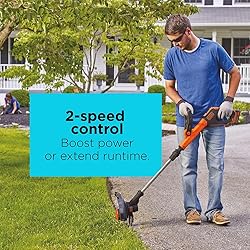 BLACK+DECKER 20V MAX 12 Inch Weed Eater Cordless String Trimmer and Wheeled Edger Lawn Tool with Spool, 2.5Ah Battery and Charger Included, Lightweight, 2 Speed PowerDrive (LST522)