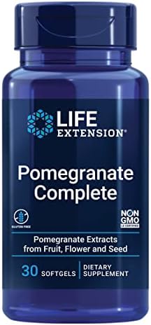 Life Extension Pomegranate Complete, Fruit Extract, Flower, Seed Oil Extract, Cardiovascular Health, antioxidant Support, superfood Supplement, Gluten Free, Non-GMO, 30 softgels
