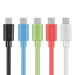 - Color: Black,Green,Blue,Pink,White Premium 3.3ft Micro USB Cables, pack of 5pcs Sync and charge with speed, certificated by FCC & CE Trusted Reliability Passing 4000 times bending test performance,guarantee the long term reliabilities. Extra cable Replace your original 3ft cable or add another for your workplace, car charger or external battery. Extra long Warranty We provide an 18-month warranty and friendly support, enjoying your MaGeek Life. Compatible With Android smart phones and tablets, MP3 players, cameras, e-readers, external batteries, and all other Micro-USB devices, from Samsung, HTC, Motorola, Nexus, Nokia, LG, HP, Blackberry and many more.
