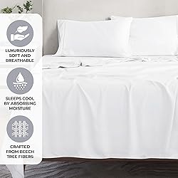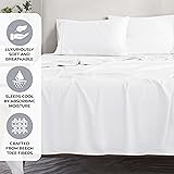 Superior Modal from Beechwood 300 Thread Bed Sheet Set, 1 Elastic Deep Pocket Fitted Sheet, 1 Flat Sheet, 2 Pillowcases, Soft Cool Sheets, Sateen Weave, Bedding Essentials, Queen, White
