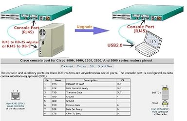- USB Port Serial Cable USB to RJ45 console cable, connects to any USB port on your laptop directly to a Cisco console port. No adapters needed. It is for Cisco console port for Cisco 1000, 1600, 2500, 2600, 3600 series routers, Catalyst 3560 switch pinout, and more Note: We upgraded the logo type and others have not changed. Operating system support Drivers are available which allow FTDI devices to work with the following operating systems Windows 10 Windows 8.1 Windows 8.1 x64 Windows 8 Windows 8 x64 Windows Server2012 Windows Server 2008 R2 Windows 7 Windows 7 x64 Windows Server 2008 Windows Server 2008 x64 Windows Vista Windows Vista x64 Windows Server 2003 Windows Server 2003 x64 Windows XP Windows XP x64 Windows ME Windows 98 Linux Mac OS X and above Mac OS 9 Mac OS 8 Windows CE.NET (Version 4.2 and greater) Android Windows RT Advantages 1.No adapters needed to get it working 2.No more DB-9 Adapters 3.No more Prolific driver problems 4.No more fake Prolific chips 32 and 64 bit operating systems are both supported Package included 1* FTDI USB to RJ45 Console cable Installation Guides If you need further support about how to pick up and install drivers, please contact us at any time Drive and related support: FTDI Official support We recommend you keep one in your laptop bag at all times in case of emergency