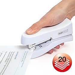 Rapesco 1319 Stand Up Stapler, Space-Saving Desktop Stapler, 20 Sheet Capacity, Ergonomic Grip, Uses Type 26 Standard 1/4" and Type 24 High-Capacity 1/4" Staples, White
