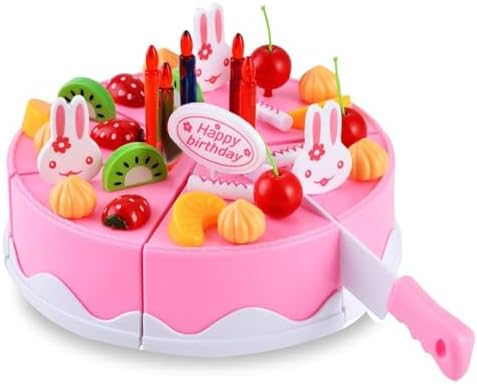 BigNoseDeer Play Birthday Cake Children's Day Gift Play Food Toy Set DIY Cutting Pretend Play Birthday Party Cake with Candles for Children Kids Classic Toy 37pcs(New Outer Package)