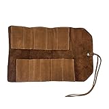 VINTAGE-STYLE TOOL STORAGE: Add a touch of class to your tools and give them a stylish home with this finely handcrafted Bourbon Brown Tool Roll. Perfect for DIY enthusiasts, specialists, and even beginners who have accumulated a few tools over time. Crafted using Full Grain Swayze Suede for durability and protection, this is a stylish answer to your storage needs for your most prized tools. MADE WITH HIGH QUALITY LEATHER: The Tool Roll is hand-cut and handcrafted using only the highest quality Full Grain Suede Leather, which we lovingly call Bourbon Brown. Our Bourbon Brown is durable, attractive, and attains a unique patina after time and use. It’s the only way to store your tools with due care and respect, as well as something to be handed down over generations. PLENTY OF SPACE FOR YOUR PRIZED TOOLS: With 10 staggered tool slots, you can store a variety of small to medium sized hand tools. Perfect for when you’re on the go as it rolls up neatly and easily and securely closed with a Full Grain Leather cord that ties up in style for that finishing touch of grace and style. Great protection for your prized tools. (Comfortably fits tools in picture that have a 2.5 inch circumference handle. Longest tool that could fit measures 9 inches in length.) COMPACT & LIGHTWEIGHT: The lightweight Bourbon Brown is perfect for conveniently packing away in your bag for when you’re on the go. Offering style and protection, the Tool Roll folds up neatly and securely so you don’t have to worry. SIMPLE AND FUNCTIONAL DESIGN, MAKES A GREAT GIFT: This makes an excellent gift for your friend, loved ones and family. Makes a great gift for anyone and everyone, from those who enjoy a bit of DIY around the house, to the professional craftsmen and women. This Tool Roll also serves for other trades, it’s great for those who love fishing, great for chefs, excellent for storing your tools on the go or travelling, perfect for your wrenches and tools for your motorbike or car, you name it.