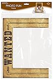 - Beistle Western Wanted Photo Fun Frame – 1 Count Proudly Made in the USA Saddle up for a rootin’-tootin’ good time with the Beistle Western Wanted Photo Fun Frame, the ultimate party prop for cowboys, cowgirls, and outlaws alike. Crafted from lightweight cardstock paper, this decorative frame is designed for casual party fun—it is not a wood or plastic frame. It’s a novelty item meant to add charm to your decor and photos without the weight of a structured frame. This frame is designed to look like a real-deal “Wanted” poster straight out of an old saloon. With rustic woodgrain detail, classic Western typography, and a bold $1000 reward graphic, this prop sets the scene for unforgettable party photos full of grit and charm. Measuring a generous 23.5 inches by 15.5 inches, it’s perfect for group photos, solo shots, or anything in between. This item is folded for shipping. Hold the sides at the creases for added stability during use. Lightweight enough to carry around the party but strong enough to last through hootin’ and hollerin’, this paper frame is built for fun. Whether you’re wrangling guests at a cowboy birthday party, Halloween hoedown, Western wedding, or a frontier-inspired school event, this interactive decor brings a hearty dose of Old West magic to your celebration. Step behind the frame and strike a pose—your Western adventure starts here! This item is a general-use product intended for decorative or novelty use by adults.