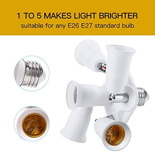 - ☀360° Degree Rotatable: Each socket has 360 rotating degrees and 180 degree bending. You can adjust the angle of the socket at your will. Easy to increase brightness with this 5 in 1 E26 E27 light splitter.