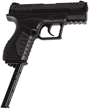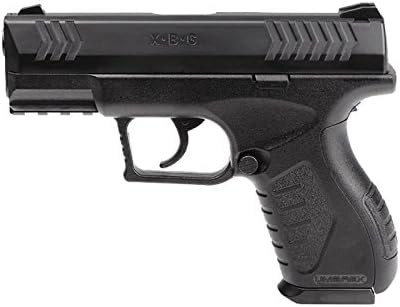 El kit de pistola de CO2 Umarex XBG utiliza un cartucho de CO2 de 12 gramos, velocidad semiautomática, 410 fps, 19º cargador BB sin caídas, visores delanteros y traseros fijos, riel de accesorios Weaver, solo doble acción, empuñaduras texturizadas, seguridad manual