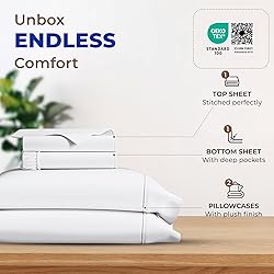 - "Slipping into fresh and crisp sheets and cloud-like, fluffy pillows is one of the most underrated pleasures in life. More so, when it's a 100% Egyptian cotton quality sheet set that offers a buttery smooth and cool touch for a supreme experience. 600 Thread Count 100% Natural Cotton Sheet Set Includes: 1 Flat Sheet measuring 90” W x 102” L 1 Fitted Sheet (with all-around elastic) measuring 60” W x 80” L + 16"" deep pocket 2 Standard Size Pillowcases measuring 21” W x 32” L ‘REST’ ASSURED WITH OUR SHEET SET Pamper yourself with the buttery smoothness and crispness of 600 thread count cotton bed sheets queen size that soothe your bones, enhance mood, and make the nights replenishing and mornings brighter. These queen cotton sheets sets are made from 100% extra long-staple cotton and a soft sateen weave to drape you in the luxury and comfort of five-star hotel bedding. You can match our solid 600 thread count sheet set with a comforter, duvet cover, and other bedroom accessories for a deluxe home decor. COOLER THAN YOUR STATE OF MIND: Our heavyweight, cooling sheets adapt to your body’s temperature and keep you cool and breezy in the dead of the summer and releases heat when it’s cold outside, baby. Perfect for couples who like to sleep at different temperatures. SNUG FIT FOR A TIGHT SLEEP: Our premium fitted sheet (from the four-piece complete set) has deep pockets and an all-around elastic to go around the mattress for a snug fit. The extra head/foot side tags on the cotton queen sheet tells you where the side goes so it’s easy to make the bed. LAUNDRY IS A BREEZE: Toss our 100% Egyptian cotton sheets queen size in a machine and wash them in lukewarm or warm water. Tumble dry in low mode. Our medium thick cotton sheets don’t pill, fade, shrink, and bleed out. The fabric opens up and becomes smoother and silkier with every wash. WE LOVE BEING SUSTAINABLE: Our cotton sheets for queen size bed is certified as STANDARD 100 by OEKO-TEX, which means no harmful c