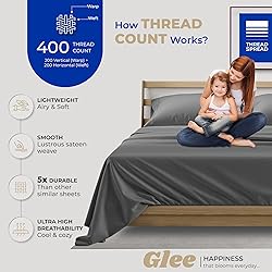 100% Long Staple Cotton - Sateen Weave Mercerized Thread Spread Egyptian Cotton Sheets For Improved Softness & Shine: Our King Size Sheets Set 400 Thread Count are made from mercerized cotton for increased luster and brighter colors that don’t fade and pill after multiple washes. The mercerized treatment improves the strength of the fabric and produces a satin sheen for a buttery smooth and soft feeling. What’s more? Cotton is naturally good for you and keeps you cool, light, and breathable at night, especially in hot weather It’s All In The Details: Handcrafted by artisans, our 100% cotton sheets king set have a detailed 4-inch hemline on the flat sheet and 16 inch deep pockets on the fitted sheet for hotel-like luxury. Overlock stitching prevents fraying at the ends of the fabric. Our king sheets cotton set includes 4 pieces: 1 Flat Sheet | (108” W x 102” L), 1 Fitted Sheet | (78” W x 80” L + 16"), and 2 King Pillow cases (21” W x 40” L) Your Safety Is Our Priority: Unlike microfiber and other linen sheets, these king sheet set 400 thread count are 100% natural and eco-friendly and grown without synthetics, chemicals, and GMOs. Our STANDARD 100 by OEKO-TEX certification ensures all our king size sheets deep pocket set are free from toxins and chemicals, making them safe for your family and friends Washing Is A Breeze: Cotton is a durable and natural material and, if cared for correctly, can last for years to come. Wash our 100% egyptian cotton deep pocket king sheet set cotton in a machine with warm/lukewarm water on a gentle cycle. Line dry or tumble dry, and fold our king sheets cotton after removing them from the dryer to prevent wrinkles. We Care At Thread Spread: If you’re unhappy with the purchase, you can get our king sheets deep pocket exchanged or refunded within 30 days of purchase as per Amazon guidelines. Pair our bedding sheets & pillowcases with a comforter and duvet cover to complete the look of the bed room. Gift these cotton sheets for king size bed to your loved ones on Mother’s Day, Father’s Day, Christmas, Valentine's Day, Halloween, weddings, vacations, and autumn holidays and make their day.