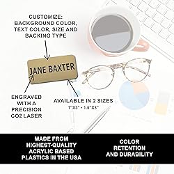 - Name tags allow customers to easily identify a business's employees from a distance. They also communicate how you would like to be addressed and other important information, such as your position. Whether you need personalized name tags for an entire team or just yourself, these custom badges will make for seamless introductions.Professionals in a range of industries require name tags for easy identification — from education to health care to retail. Available in two sizes, these custom engraved name tag badges offer these benefits and more: Flexible options: Each name tag can be customized to suit the owner's preferences. Choose a font to reflect the tone of your business and a color to stand out against your clothing. Color options include red and white, almond and black, and white and blue.Professional appearance: The rounded edges and crisp lettering gives each personalized name tag a welcoming yet professional feel. The color of the lettering will stand out against the background to make your name tag visually appealing and easy to read.High-quality material: These name tags are manufactured from the highest quality plastic and etched using a precise CO2 laser for long-lasting durability and legibility.These custom engraved name tags come with either magnetic or pin backing. Ideal for thinner clothing, personalized magnetic name tags prevent unwanted holes in fabric. A pin backing is ideal for thicker clothing and for individuals who cannot use magnetic name tags safely, such as people with pacemakers and other implanted medical devices.When you create your name tag, you will have the option to enter up to three lines of text. Each line can contain up to 30 characters. The number of characters will determine the font size. Personalized name tags can give your staff a cohesive look. They also make memorable gifts for loved ones starting new careers.