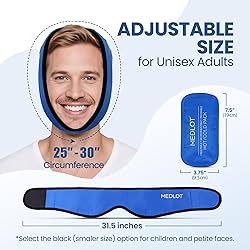 HOT COLD PACK FOR FACE: 4 flexible gel packs provide optimal hot or cold therapy for injuries and pain relief; Use 2 gel packs at a time and rotate in the other 2 packs when hot or cold wears off; NOTE: Wrap and ice packs are updated, MEDLOT brand would be sent EFFECTIVE PAIN RELIEF: Wisdom Teeth Recovery Must Haves; FSA HSA Eligible facial ice pack strap provides pain relief for TMJ relief, wisdom teeth removal, face oral surgery after care, dental surgery, tooth pain relief for adults, TMD, cosmetic injections, laser treatments, dermabrasion, migraines, sinus pain, jaw soreness, tonsillectomy recovery and more CONVENIENT HANDS-FREE DESIGN: Built-in pockets and hook-and-loop wrap keep the wrap snugly in place; Allow you to rest comfortably or to continue with your daily activities ONE SIZE FITS MOST: The Wisdom teeth ice pack head wrap fits circumferences from 25 inches to 30 inches; Adjustable Wrap can be easily adjusted for head size and your desired pressure; Suitable for adults, women and men; Note: select the black color (smaller size) option for kids and petite faces HOT COLD THERAPY: Freezable & Microwaveable pack; Place the gel packs in the freezer for cooling therapy or warm up in the microwave for heat therapy; Note: Don't heat the cloth wrap in the microwave, the wrap isn’t microwavable; Detailed instructions are printed on the gel pack backing and the package box REUSABLE, DURABLE, SAFE: Gel packs are latex-free and non-toxic; Double sealed edges and thick nylon material exterior to prevent leaking; Replacement Hot Cold Pack ASIN: B082BM481V FLEXIBLE AND LEAKPROOF: Cold/hot gel packs remain pliable even when frozen; The comfortable and soft wrap is designed for the head, but of course gel pack can be used for other parts of the body SAME Product NEW Brand: MEDLOT is a wholly-owned brand of LotFancy Inc. Printed branding may vary, but the products are identical