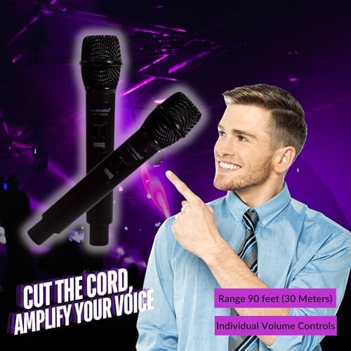 - All-in-One Audio Package: The MUSYSIC PA15-MX800 comes with an 8-Channel Mixer, Amplifier, two 15" Speakers, a Dual Wireless Microphone System, Speaker Stands, and 20-foot Cables. Perfect for any audio needs—announcements, music, or presentations.