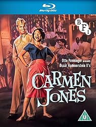 - Carmen Jones (Blu-ray) A film by Otto Preminger Dorothy Dandridge, whose vibrant performance resulted in the first Oscar® nomination for an African American actress in a leading role, stars as the beautiful temptress Carmen Jones. In one of the sexiest performances ever seen on the big screen she seduces the handsome GI Joe (Harry Belafonte) away from his sweetheart (Olga James), but after she tires of him and takes up with a heavyweight prize-fighter (Joe Adams), she only succeeds in triggering Joe's tragic revenge.Upon its release, Otto Preminger's Carmen Jones was rightly hailed as a milestone in musical cinema. With an all-black cast this critically acclaimed version of Bizet's opera Carmen features an iconic soundtrack from Oscar Hammerstein, including songs such as 'Beat Out Dat Rhythm on a Drum' and was voluptuously shot in Cinemascope Technicolor. Special features Presented in High Definition Karen Alexander on Carmen Jones (2016, 8 mins): a newly filmed appreciationAudio commentary by Adrian Martin The Guardian Lecture: Harry Belafonte interviewed at the National Film Theatre (1996, 105 mins) Stills and Posters GalleryOriginal theatrical trailerIllustrated booklet with new writing by Chris Fujiwara and full film creditsUSA | 1954 | colour | English language, with optional hard-of-hearing subtitles | 105 minutes | original aspect ratio 2.55:1 | BD50: 24fps, 1080p, PCM stereo audio (48kHz/24-bit) and 4.0 DTS-HD Master Audio