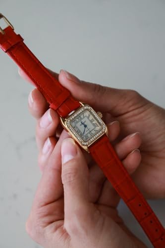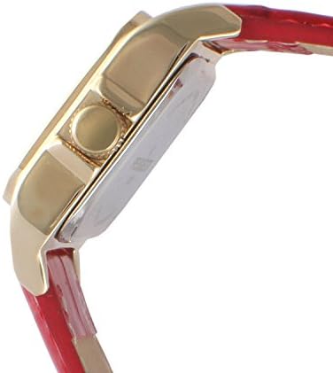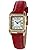 Peugeot Women's 14K Gold-Plated Tank Crystal Bezel Roman Numeral Red Leather Band Watch 3052RD