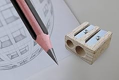 - This double-barrel wood sharpener features 2 sizes for both normal and thick pencils. Sharpens triangular pencils as well. Small, durable construction.