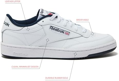 Reebok Men's Club C 85 Fashion Sneaker, Int-White/Navy, 12 M US