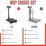- This 600 lb scale is built for precision and versatility, boasting a high capacity with an accuracy of 0.05 lbs. This scale for shipping packages spacious 19.5" x 15.75" big stainless steel platform of this digital bench scale offers ample room for weighing a wide range of items, while the durable surface is easy to clean, ensuring long-lasting performance. This luggage scale features advanced computing functions such as Zero, Tare, Add, and Store allowing you to weigh and save up to 99 items in the memory of the freight scale, streamlining your workflow. The foldable design of the warehouse scale makes it highly portable, and with a rechargeable battery lasting up to 150 hours, you can use the laundry scale on the go or plug the keg scale into a standard outlet for continuous use. The bright LED display on the scale for shipping provides easy viewing from a distance, showing weight, unit prices, and total costs for added convenience on the scale for boxes.